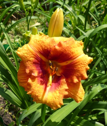 kwiat 10 cm, pomarańczowy z czerwonym okiem i żółtą gardzielą