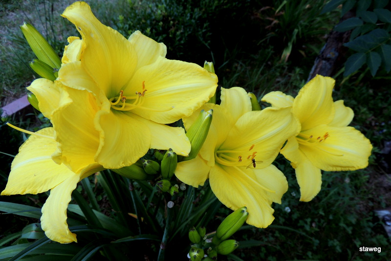 To znakomity liliowiec, piękny mimo suszy i deszczu, długo i obficie kwitnie, świetnie przyrasta. Jeśli ktoś chce dużą plamę żółtego w ogrodzie, polecam
