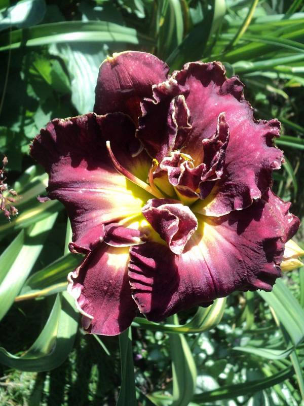 Hodowca: Carpenter-J., 2005 Wysokość: ok 60cm Kwiaty: kwiaty koloru purpurowo- fioletowego z lawendowym znakiem wodnym nad zielonym gardłem Wielkość kwiatu ok 15 cm. Stanowisko: słoneczne do półcienistego. Mrozoodporność: zimuje bez okrycia. Uwagi :zakwitł po trzech sezonach spędzonych u mnie , pierwsze kwiaty były pełne i nawet miałam wątpliwości czy odmiana nie jest pomylona ale kolejne kwiaty zrobiły się zgodne z wzorcem . Kwitnie długo i obficie..Liliowiec dla lubiących niespodzianki.