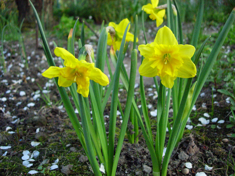 Narcyz książkowo powinien rosnąć najlepiej na glebie próchnicznej i stale wilgotnej. Hym... tego...u mnie w takich cud warunkach glebowych bezczelnie zanikał. Prawda jest taka że co ogród to mikroklimat i metodą prób i błędów trzeba sprawdzać jak to u nas cebulowe wiosenne rosną. Moja uprawa narcyzków odbywa się obecnie na piochach, niezbyt suchych wiosenną porą ale piochach. I co z tego że nie tak całkiem zgodnie z literaturą, grunt że rośnie. Narcyzy oprócz nawożenia od czasu do czasu (bez przesadyzmu) i odchwaszczania ich stanowisk nie wymagają specjalnych zabiegów pielęgnacyjnych. Raz na parę lat wykopuje się narcyzy pod koniec czerwca kiedy "zielenina" czyli liście są już zżółkłe, przebiera się je, selekcjonuje i odrywa cebulki przybyszowe, potem przechowuje się cebule w chłodnym i ciemnym pomieszczeniu, a następnie we wrześniu się je sadzi. Dobrze posadzić w inne miejsce albo wymienić ziemię na ich stanowisku.