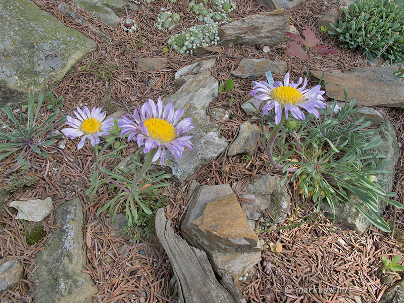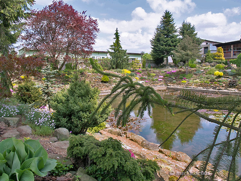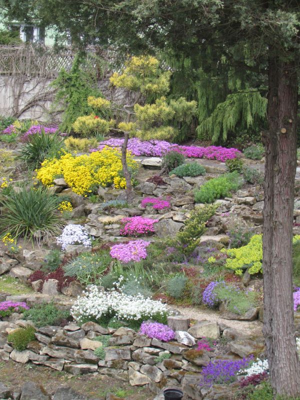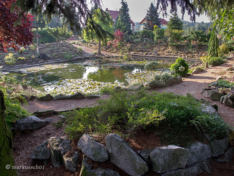 Zdjęcia nie będą zamieszczane chronologicznie, bo nie o to przecież chodzi... spacery nawet te wirtualne dostarczają niezapomnianych wrażeń i mogą być inspiracją dla kolejnych wielbicieli założeń skalnych. Na każdym kroku widać tam z jak wielkim smakiem i miłością skomponowane zostały nasadzenia roślinne oraz kamienne aranżacje. Głównym budulcem skalnym użytym do budowy tego ogrodu skalnego był piaskowiec, pochodzący z pobliskich kamieniołomów.