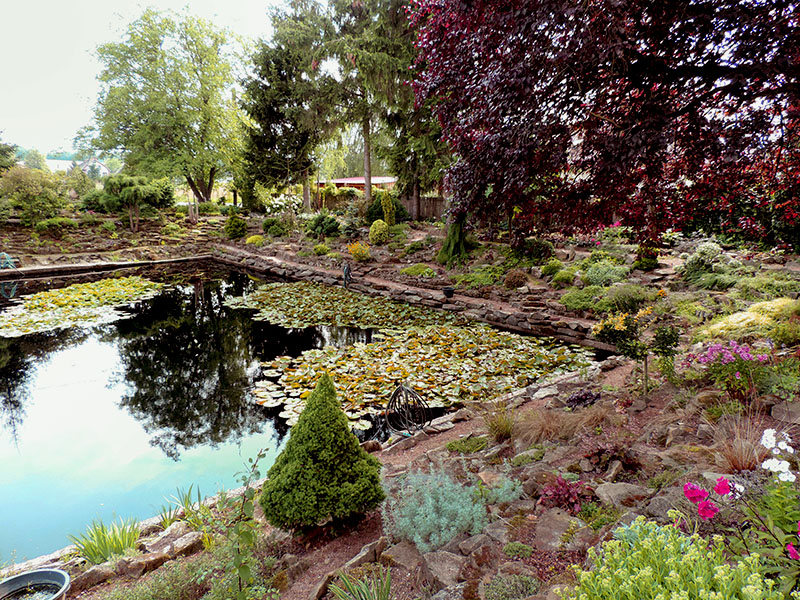 Ogród o tym profilu jest jednym z największych w Polsce, gdzie na powierzchni 25 arów założycielka przez wiele lat tworzyła ostoję dla ukochanych przez siebie „skalniaków”. Powstał przed około czterdziestu laty i był przez Ewę prowadzony do dnia smierci 05.03. 2015 roku.Obecnie ogrodem zajmuje się sympatyczna Pani Ania