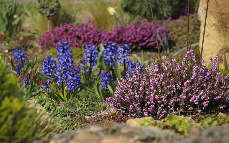 Dzisiaj na skalniaku było całkiem kolorowo, zakwitło trochę roślin cebulowych, a i wrzośce nadal kwitną . Może nie są to rośliny typowo skalne, ale w tym roku do ogrodów skalnych właśnie wrzośce polecam