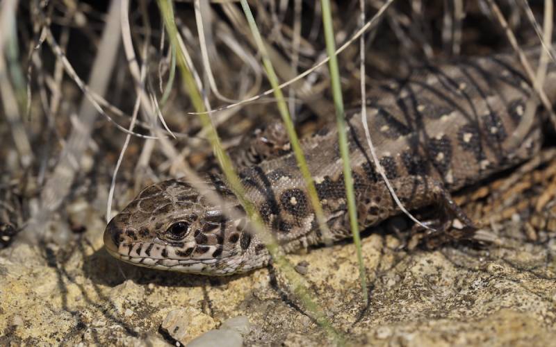 Z każdej "dziury" wychodzą gady. Jaszczurki mam na skalniaku wszędzie, czuja się jak u siebie. Jeszcze grzebiuszka ziemna sobie tam mieszka , ale to już płaz.