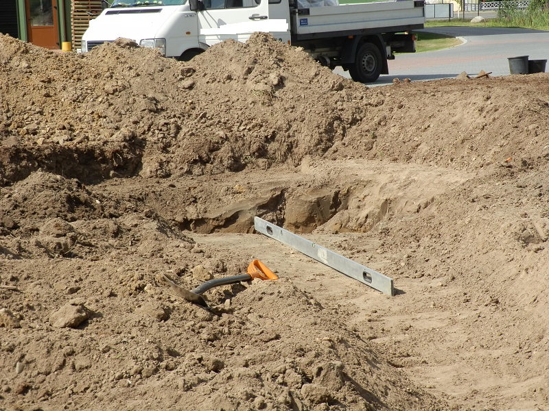 Jeżeli teren nie jest płaski, dobrze jest wyznaczyć jego poziom co ułatwi nam odpowiednie uformowanie wykopu.