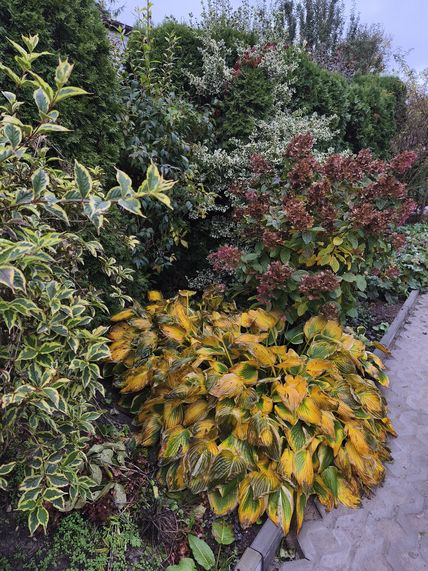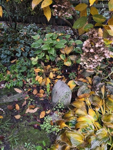 Niektóre hosty już w szatach jesiennych, ale niektóre się nie poddają i wciąż szpanują zielenią.