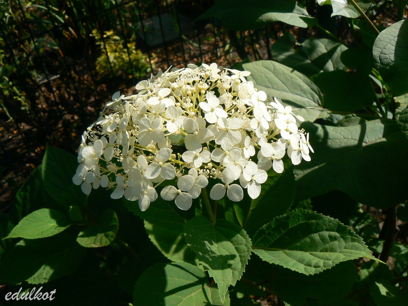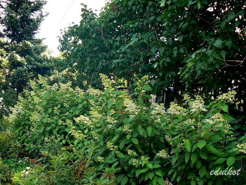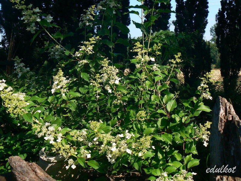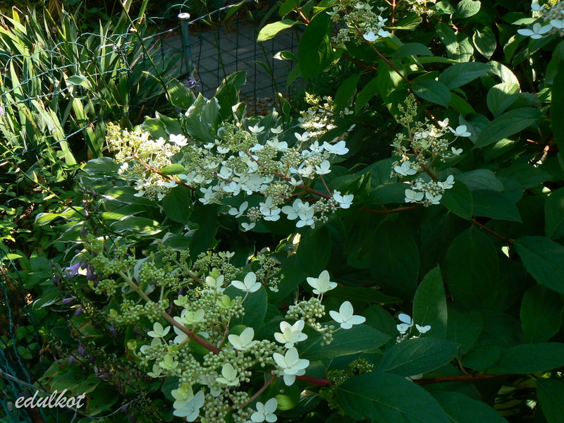 Zrobiłam lepsze zdjęcie hortensji rosnącej pod dębami podejrzaną o bycie Kyushu, teraz widać że zaczyna zbierać się do rośnięcia w masę