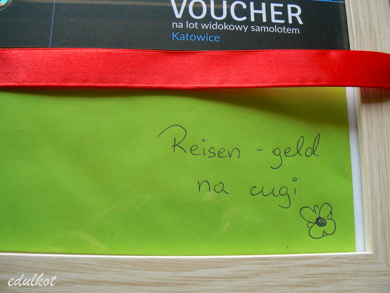Od dzieci i ich teściów dostał fajny prezent, fajny bo nigdy w swoim życiu nie widział morza i nie leciał samolotem, a tu choć nie razem ale ma obie atrakcje zapewnione :diabelek