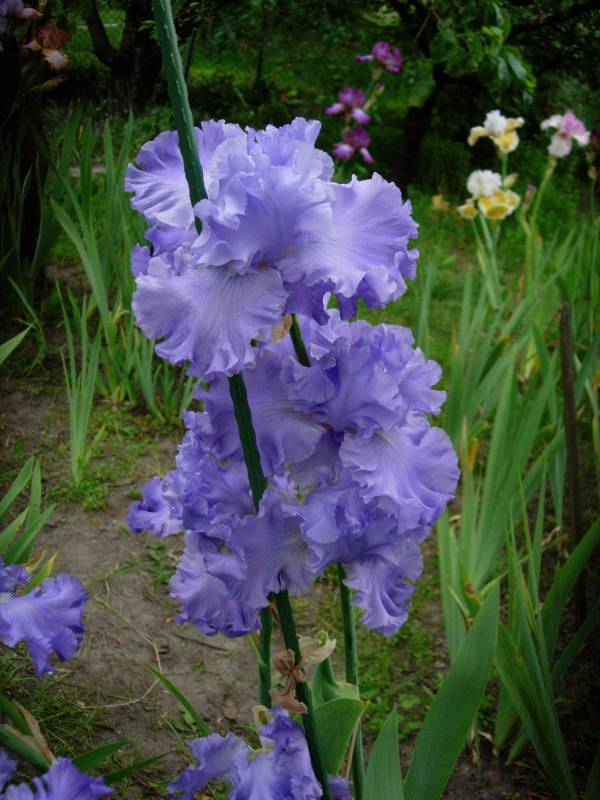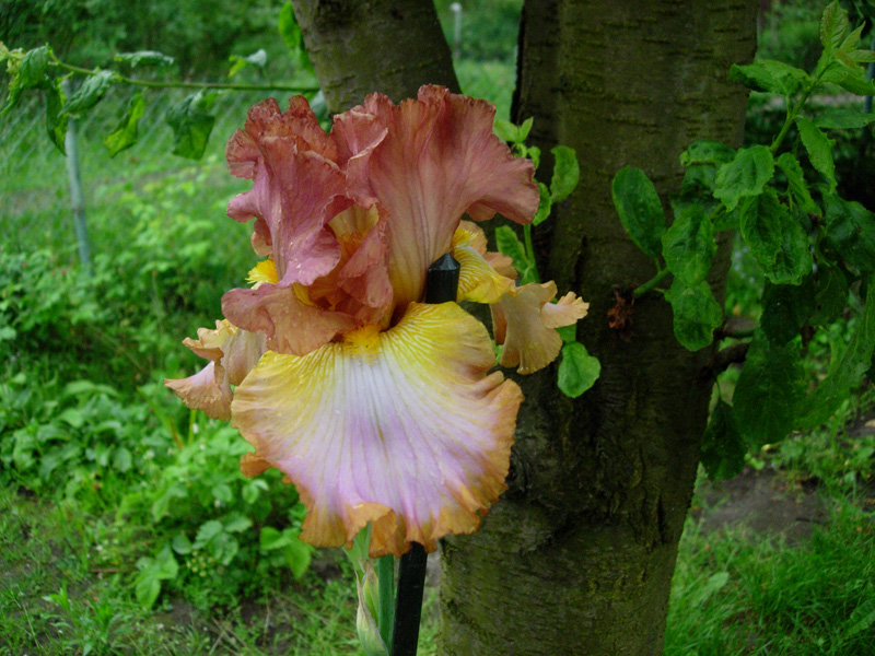 . To może być Sarah Bernhardt. Krzaczek już całkiem, całkiem. Pewnie w przyszłym roku będzie kwitł (w tym już chciał). Jest jeszcze jedna wiśniowa – pachnąca. Ta tworzy spory krzaczek, ale głównie z małych, krótkich kłączy. Zastanawiam się, czy tych kłączy trochę nie oddać, bo wiem już, że są zdrowe.
