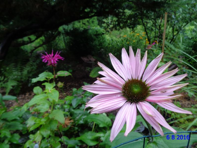 Jakaś jeżówka, mam nadzieję, że to ta zwyczajna, purpurowa; z lewej w głębi, ostatni zakup z BR: monarda 'Kardinal'
