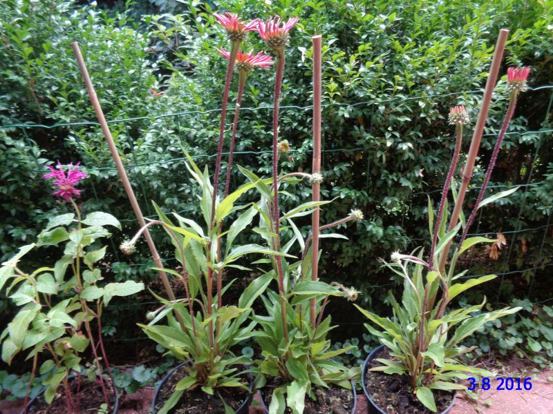 /, monarda Kardinal i Języczka Przewalskiego. Ta ostatnia ma towarzyszyć rodkom, z paprotami, hostami, tawułkami i czymś tam jeszcze. Monardy chcę dożenić do floksów wiechowatych, nie jestem do końca przekonana, czy będzie dobrze, ale zobaczymy, jeżówki mają najbardziej słoneczną miejscówkę; jeżówki - moje utrapienie. Mnóstwo nie przetrwało zimy, obiecałam sobie, że koniec z tymi niewdzięcznicami, i co? Nie mogę się oprzeć, tak mi pasują do lasu, zupełnie jak rudbekie i floksy, ostróżki i lobelie. Mówię, że utrapienie, ale może tym razem będzie lepiej, bo jako rośliny jednoroczne są dość kosztowne