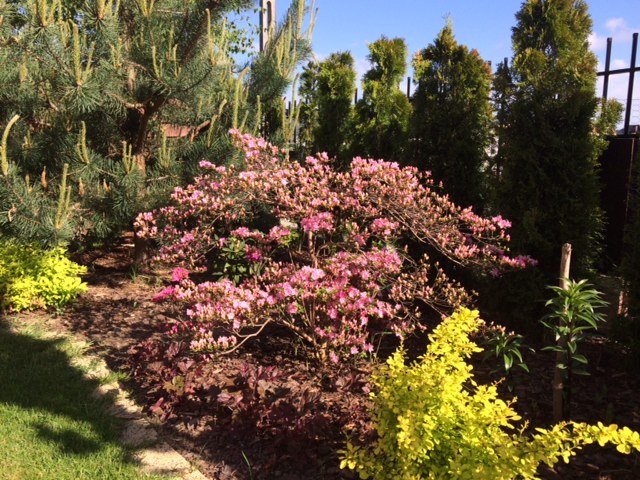azalkowo rodkowa w kolorach.. w głębi Rasputin- z daleka nie widać, ale też już rozchyla pąki. To jedna z lepszych chwil w sezonie- czas rodków i azali.. Po nich kolejny extra czas to wrzosy, hortusie i trawy.. Czerwiec i lipiec powinnam przetrwać z bodziszkami, dzwonkami i liliami- zależy mi, żeby w każdym momencie coś kwitło i cieszyło oko.. chociaż odrobinkę..