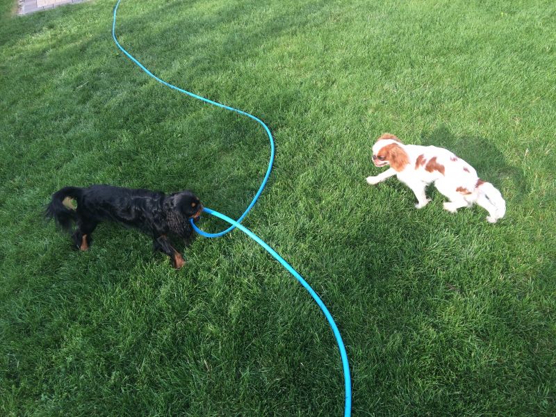 Cyguś odpocząłby od Intruza.. Toleruje nowego kumpla całkiem dobrze- pozwala sobie obwąchiwać nos w trakcie karmienia smaczkami i nawet nie warknie na taką poufałość, chociaż chwilami widzę, że utrata pozycji jedynaka jest mimo wszystko trochę przykra.. Staram się koić rozdarte serduszko.
