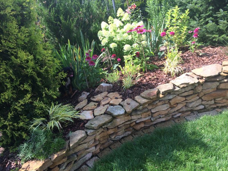 Posadziłam wczoraj na szczycie pagórka jałowca procumbens. ładnych kilka lat minie, zanim podrośnie i zacznie się zwieszać z murka, ale juz stanowi fajną plamkę