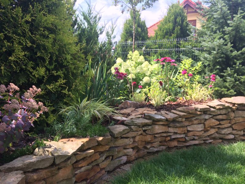 Projektant stanął na wysokości zdania! Zaprojektował mi na rabacie autostradę, a ja postanowiłam popisać się nie mniej, niż on. Usunęłam stratowaną hakonechloe..i wyłożyłam trasę piaskowcem.. a co..niech mają looksusy