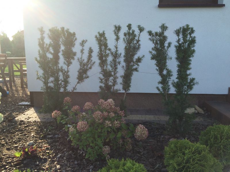 posadziłam za sosenką. Na razie ma świetlisty cień, ale będę usuwać dolne gałęzie sosny i co roku odsłaniac pień o jedno piętro, tak więc chwilę musi wytrzymać.. Będzie jej tu dobrze, bo tuje się ładnie rozrosną i zrobią jej zielony parawan od mroźnych wiatrów.