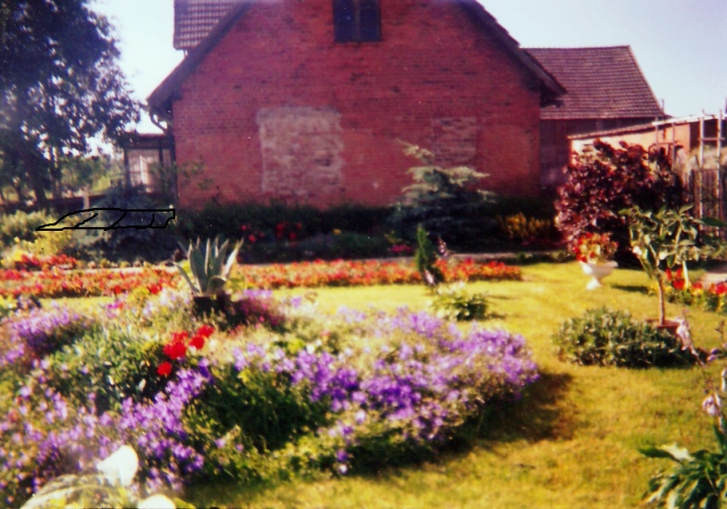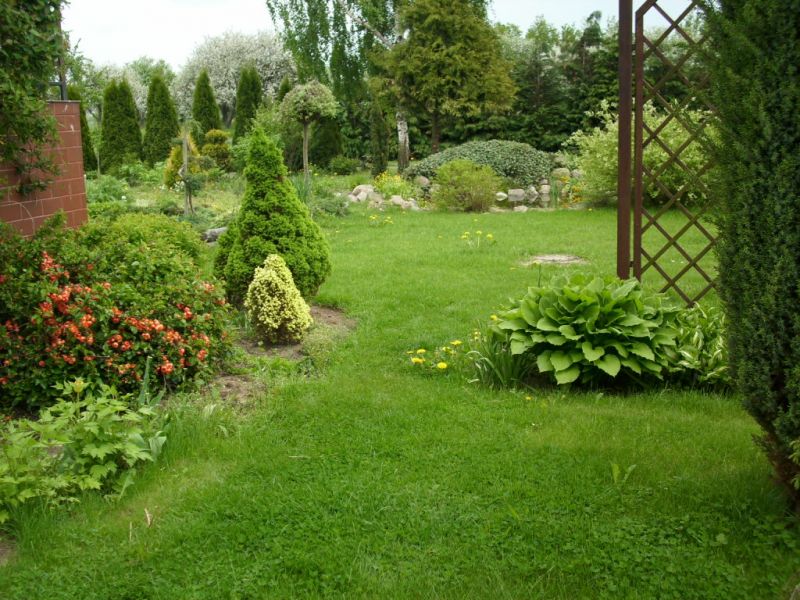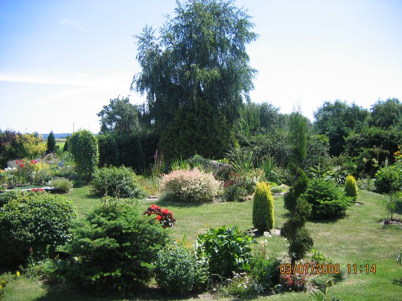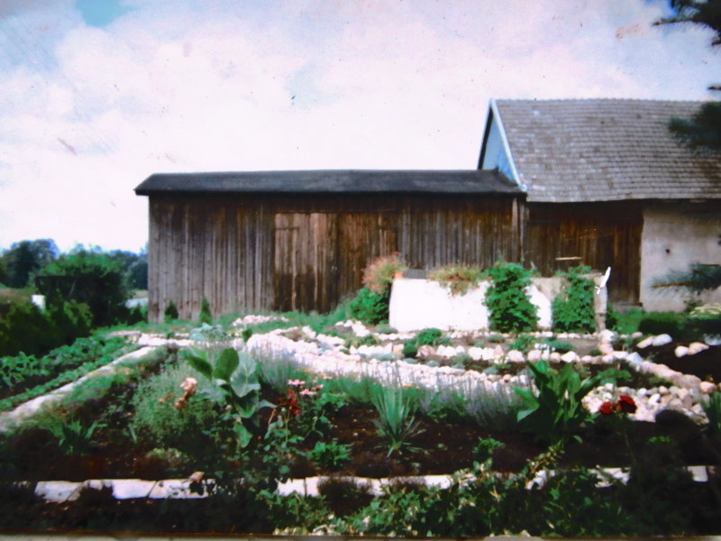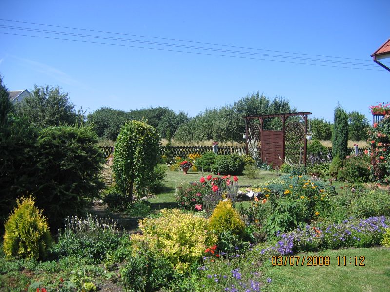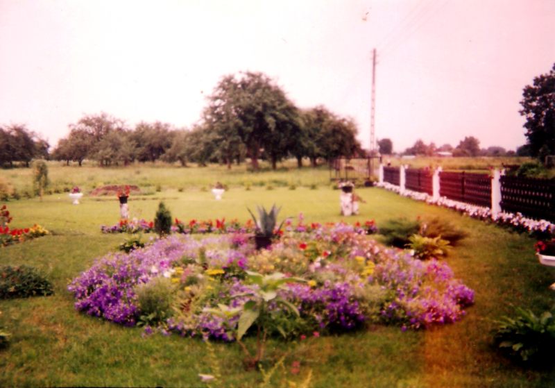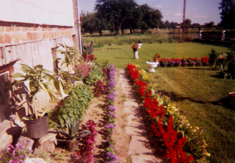 W latach dziewięćdziesiątych gosp. przeszło na męża i na mnie, od razu postawiliśmy nowy dom i postanowiłam, że w około tego domu musi być ogród. Nie od razu zagospodarowałam przeznaczone miejsce roślinami gdyż na ogród nie miałam wolnego czasu więc musowo było zasiać trawę.