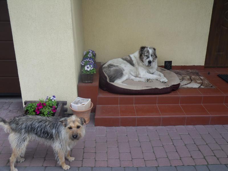 , na szczęście wodę mam z własnej studni głębinowej , więc koszta dotyczą energii elektrycznej....można wytrzymać...Asia czujna a jak.... jeśli już ,,coś'' usłyszy lub wypatrzy to pędzi na złamanie karku jak ,,przecinak'' 60 kg tratując wszystko co stanie jej na drodze.....jedynie oczko omija...