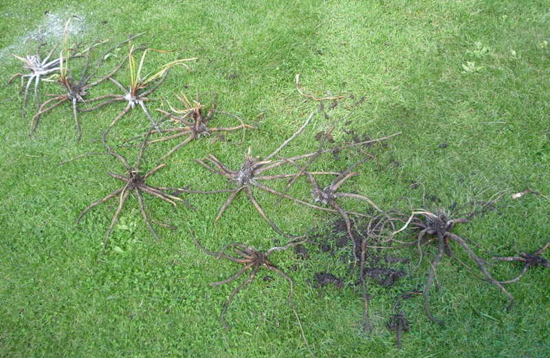 Niektóre, kłącza były podgniłe/przez obfite deszcze/ suszyłam je na trawniku i posypałam popiołem /choć nie wiem, czy, to miało jakiś pozytywny wpływ/