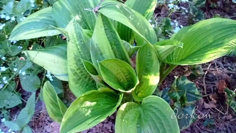 Duże hosty rosną szybko, tak mi się przynajmniej zdaje. Jeden liścior już robi robotę, a kilka to widać z daleka. Są rewelacyjne