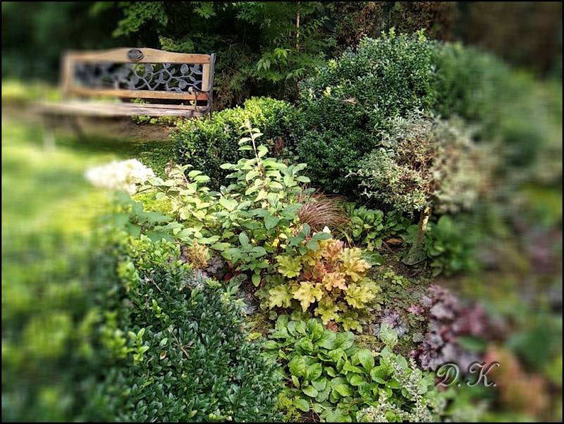 I są jeszcze buki. Są ozdobą na rabacie, trudną dla mnie do pokazania i są ogrodzeniem, formą żywopłotu. Takim otuleniem ale nie zamknięciem przestrzeni.