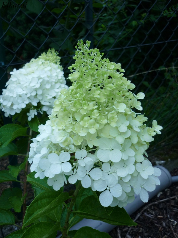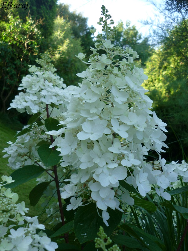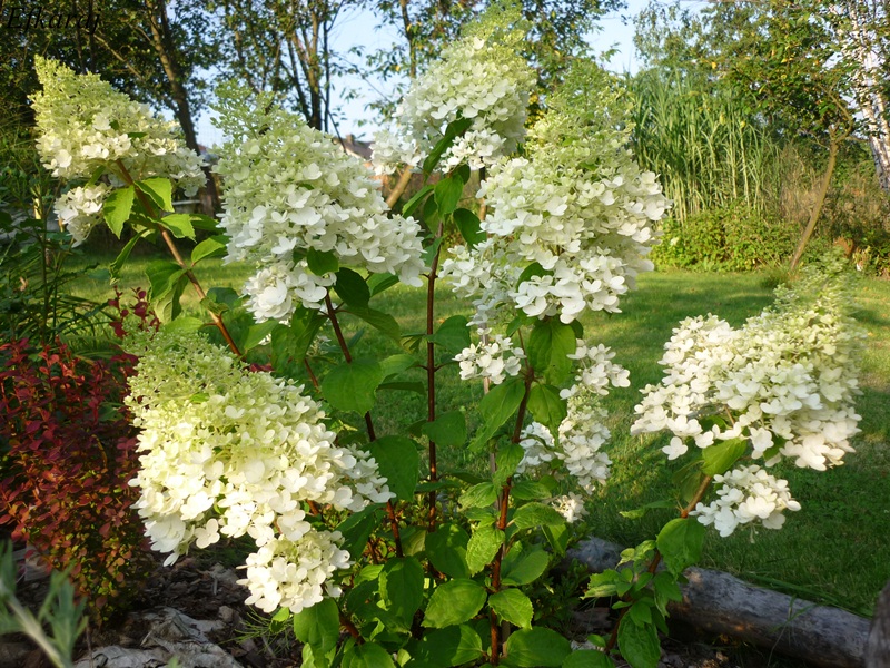 Danusiu, hortensje bukietowe szczerze polecam... choć nie wiem, które są najmniejsze. Ponoć 'Bobo' nie rośnie wysoko, stąd jej nazwa. Ale u mnie już osiągnęła ponad metr szerokości, a wiechy ma ogromne. Może w donicy będzie nieco węższa, a może wystarczy korygować ją cięciem.