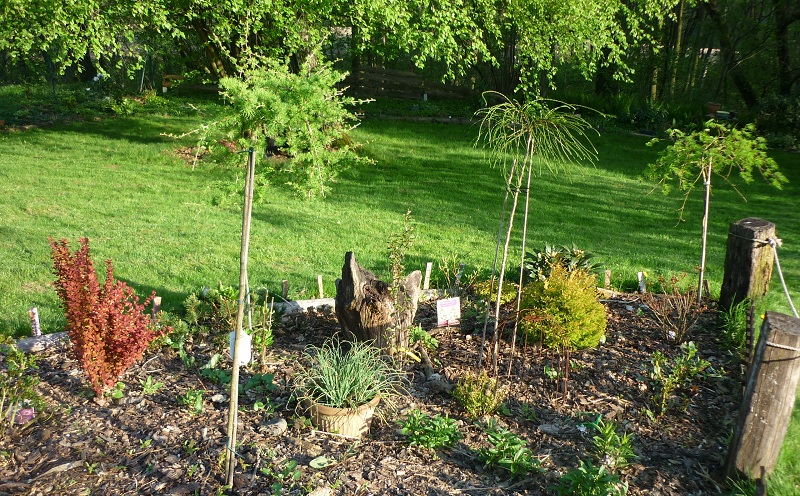 Jeszcze zostało wyciągnąć te resztki agrotkaniny i dosypać kory. Hakonechloe ładnie się rozrasta, dużo lepiej niż pod lasem