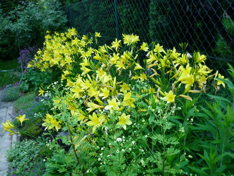I wszelkie roślineczki kolekcjonerskie, gdzie trzeba się schylić, żeby wypatrzyć ich piękny mikroskopijny kwiateczek, też mnie nie ruszają. Najbardziej lubię gęste, łany kolorowego kwiecia. Co prawda, do łanów to w moim ogrodzie jeszcze dużo brakuje, ale staram się co roku coś powiększyć, żeby ziemi widać nie było na rabatkach. Łan to na razie mam tylko przed oknem w kuchni z liliowców żółtych. Zapach jak kwitną mam w kuchni i w salonie