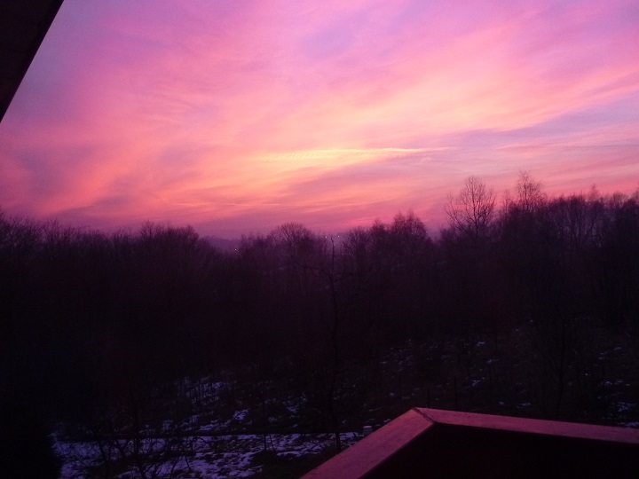 Żanetko, Nelu, Danusiu, już po śniegu u mnie. Idzie znów ciepło i chyba będzie wiało, bo dziś tak wyglądało niebo na zachodzie