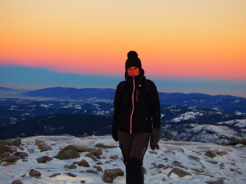 Więc kiedy poszedł w poniedziałek do pracy to ja sama wybrałam sie na zachód słońca na Babią,miałam stracha na szczycie bo strasznie wiało i było bardzo slisko.
