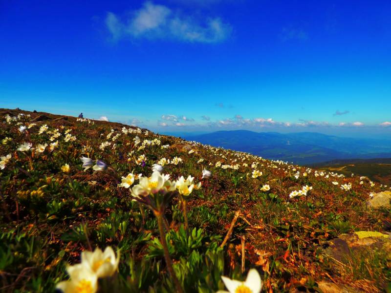 W górach wreszcie prawdziwa wiosna,na wysokości 1200m,od strony północnej wiosenne kwiaty kwitna.