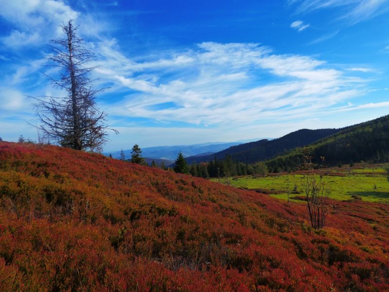 Ostatnio mimo brzydkiej pogody poszliśmy z M przez Czatożę na Małą Babią,ale że M.Babia nie należy jako tako do babiogórskiego parku narodowego,bo jej okolice są własnością na szczęście mieszkańców Zawoi,oraz Słowaków poszliśmy swoimi drogami przez Halę Czarnego,gdzie kilkadziesiąt lat temu,pola były koszone,a potem wypasane przez owce.Teraz Hala zarosła jest 50 razy mniejsza,niż była kiedyś.Jednak ludzie w sezonie wakacyjnym,przychodzą tam zbierać jagody.