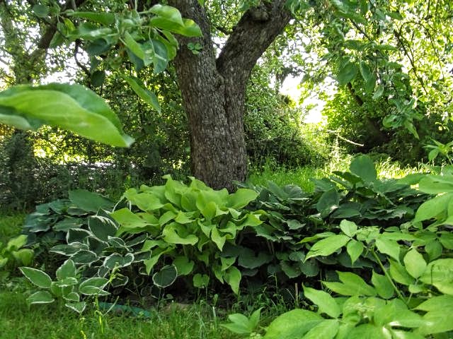 Siberio, jabłoń niestety wczesna dlatego funkie zgrupowane są blisko pnia i mocno się zastanawiam czy powiększać rabatę, z drugiej strony szkoda mi miejsca i ciągnie mnie do dosadzania tam roślin.