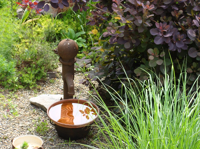 Dwa powody, marzyłam, że kiedyś popłynie strumyk przez ogród i nie protestowałam gdy M upierał się przy duzym trawniku, który wtedy nim był, muszę przyznac, że M pielęgnował go ale to juz przeszłość. Drugi powód, hamulcowy.......