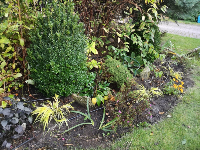 Przesadziłam tylko piwonię. Może kwiaty pozostałych będa lepiej wyglądały na tle ciemnej zieleni?