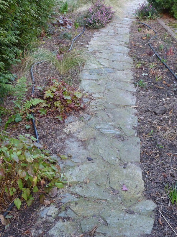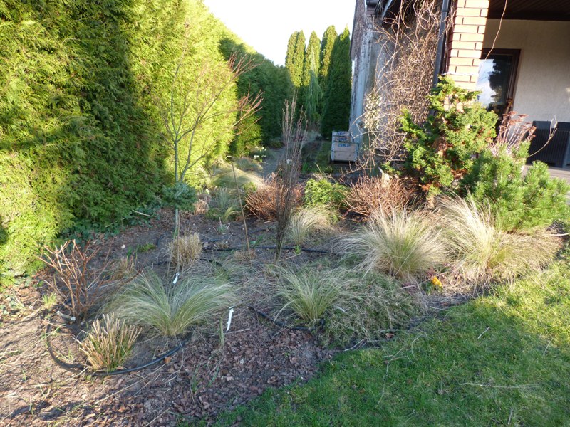 Udało mi się posprzątać całą rabatę przy ścieżce, za schodkami i okrągłą przy tarasie. Teraz ledwo chodzę. Ale jestem bardzo zadowolona. Jutro zamierzam zabrać się za rabaty pod sosnami. Trzeba się spieszyć ze sprzątaniem, bo wszystko już ruszyło na maksa. U mnie dusi się pod zwałami śmieci.
