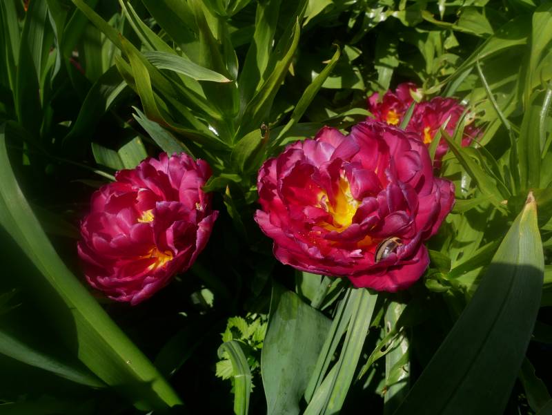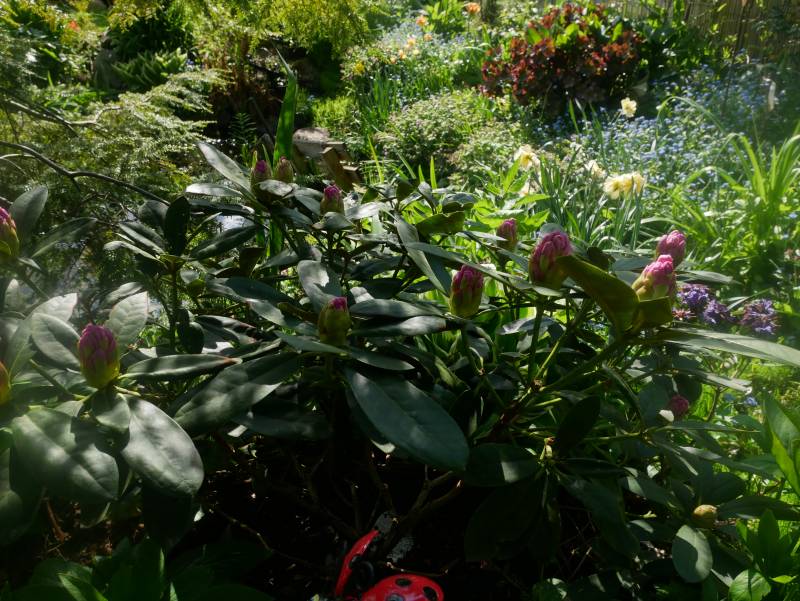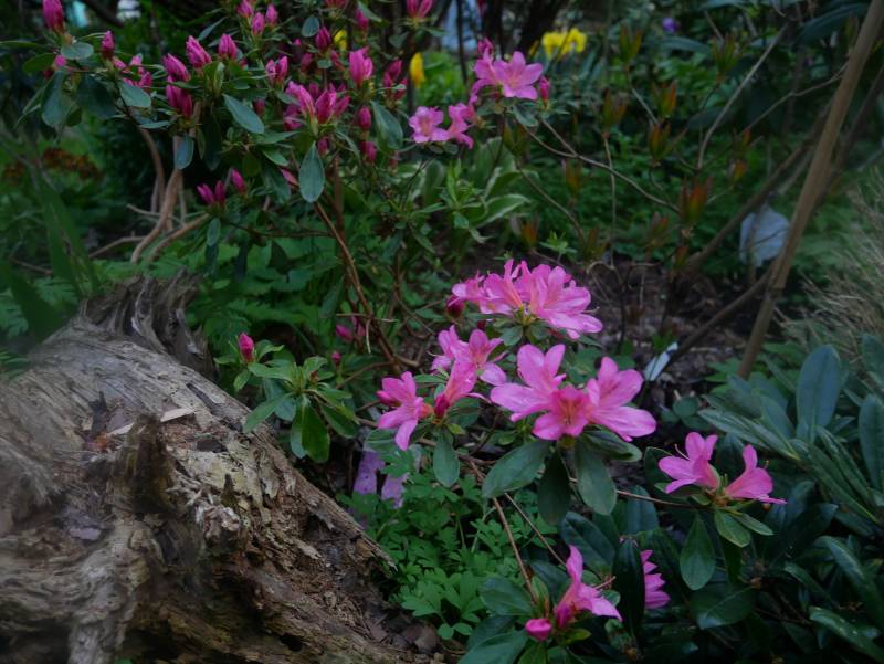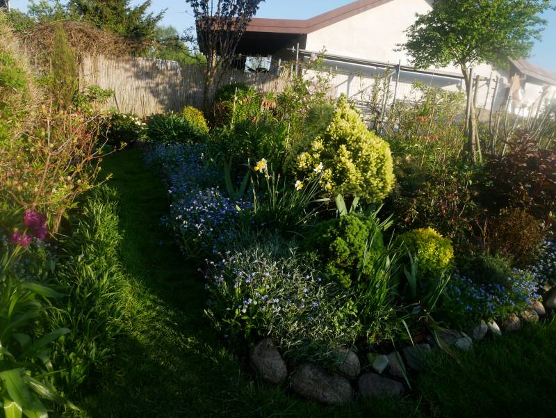 Marysiu -w końcu z przyjemnością grzebie się w ziemi ....chociaż w południe było nawet za gorąco -  uciekłam do domu akurat na przygotowanie szybkiego obiadu ,kwitną i rodki i azalie japońskie ,dzisiaj rozkwitła pierwsza azalia wielkokwiatowa.