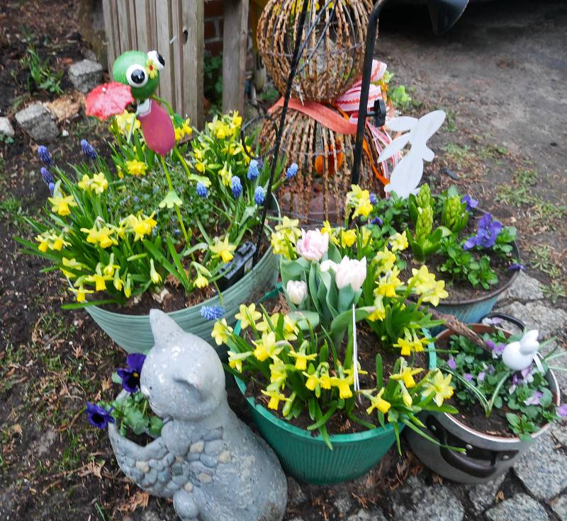 Czasami uda mi się kupić idealne białe jajka, wtedy nie farbuję, zawiązuję tylko cieniutkie wstążeczki z kokardkami, ale u nas zawsze do święcenia jajka były w skorupkach, tylko potem te skorupki trzeba było podsypać kurom, żeby nic święconego nie poszło do śmieci. Teraz wysypuję je na kompost.