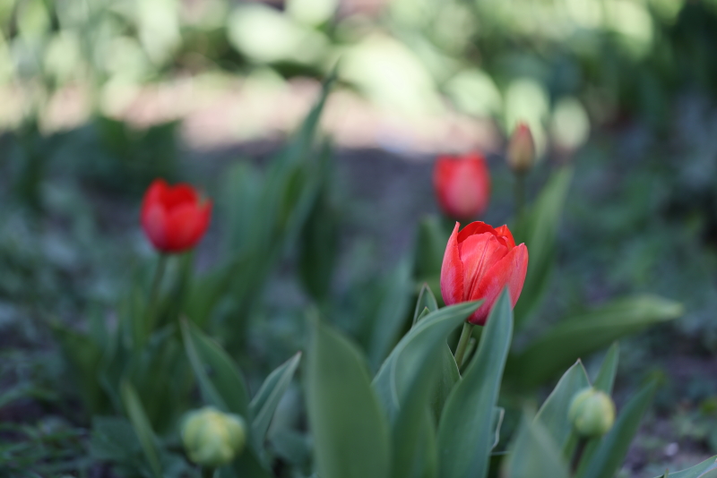 Powoli tulipany się otwierają i zaraz wszystkie wybuchną.