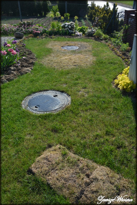 jak widać - teren nieciekawy, co tu dużo kryć - na szambie. W międzyczasie w naszej gminie wprowadzono oczyszczalnie przydomowe i załapaliśmy się. No ale wiadomo usunięcie i zakopanie dołów po szambie było bez sensu. No i został taki teren , z ziemią na 10 cm, co nawet trawa nie chciała rosnąć.