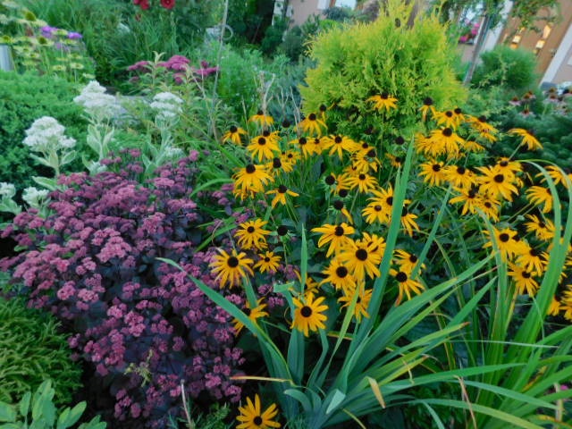 Gosiu wiem bo mnie też ta jeżówkowa choroba dopadła wink-3 Fotki z hortensjami cudne ale jeżówka zielona piękna i ten ciemny rozchodnik przy rudbekii :bravo