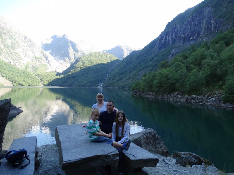 Żanetko, Nelu, Gosiu, Ewo Elu, Ino bardzo dziękuję Wam za wizytę i miłe słowa. Jesienny ogród czasami pięknie wyglądał zimowe dni takie jak teraz ze śniegiem też są ładne ale już z utęsknieniem oczekuję wiosny i lata. Pomalutku snuję wiosenne plany ale czy uda mi się coś zrealizować to czas pokaże, postaram się o nich też na bieżąco pisać. Na dzień dzisiejszy nie mam żadnych ogrodowych fotek, bo wcale ich nie robię ale kiedyś obiecałam że w zimie zdam relację z mojej wycieczki do Norwegii. Jak już pewnie pisałam mieszkaliśmy na kempingu w Oddzie. Kemping położony nad jeziorem Sandvinvatent pomiędzy Parkami Narodowymi Folgefonna i Hardangervidda. Zaś sama Odda to małe miasteczko nad fiordem. Ponieważ lądowaliśmy w Oslo to przez całą noc jechaliśmy do Oddy, tam odsypianie i pierwsze zwiedzanie miasteczka a wieczorem zrobiliśmy sobie krótką wycieczkę po górach obok kempingu