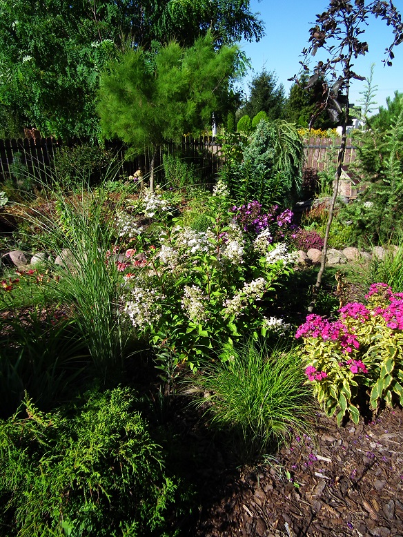 Ina ta rabat a tylko troszkę przerobiona ale teraz znacznie bardziej mi się podoba. Dziś właśnie naocznie oglądałam hortensję u Marty i na początku stwierdziłam że jednak ją zostawię tam ale teraz mam już dla niej lepsze miejsce tylko że teraz nie mam pomysłu jaką hortensję posadzić w jej miejsce
