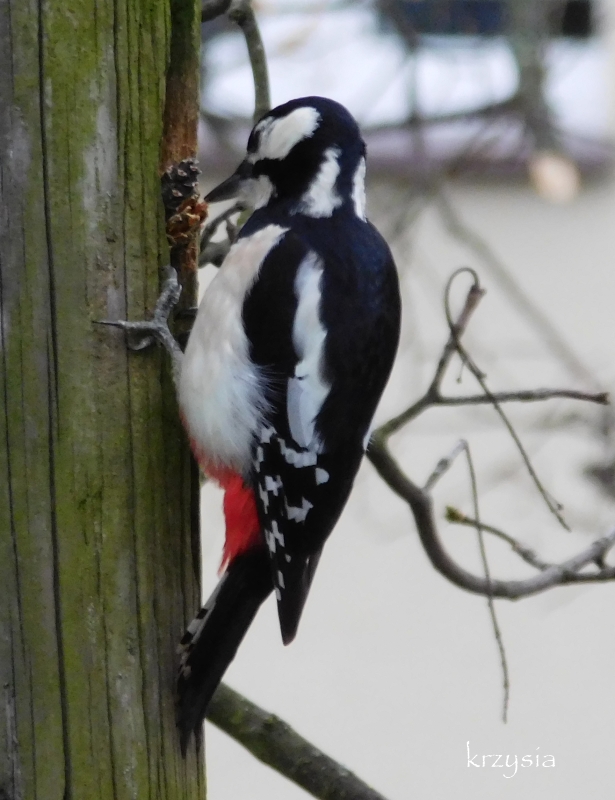 Mój wieloletni zimowy gość, jak długo żyje dzięcioł ? Bywa od dawna, chyba odwiedza mnie kolejne już pokolenie.