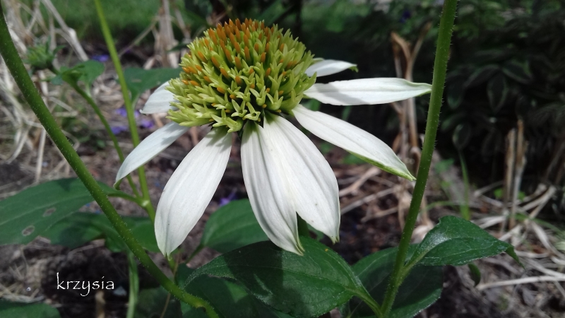 Jesienią przekopałam środek trawnika i próbuję wprowadzić tu trochę kolorów, to jedno z nielicznych bardziej nasłonecznionych miejsc, suchych i poprzerastanych korzeniami. Docelowo ma być częścią trawiastą ogrodu, czyli oprócz trawnika są też trawy ozdobne, czy się sprawdzą czas pokaże.