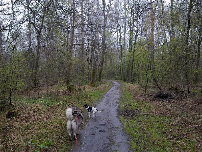 Ubrałam się na cebulę i zabrałam burki na przebieżkę do lasu. Tam pusto bo kto by się szwendał w zacinającym śniegu