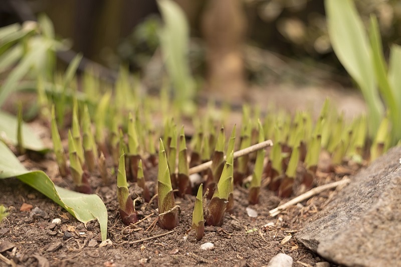 Danusiu epimedium ledwo od ziemi odrosło. Musiałam się dobrze przyjrzeć, czy już coś widać. Ale nie wiem, czy ubiegłoroczne liście wyciąć...
