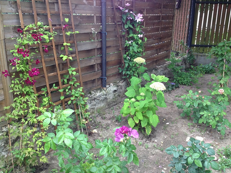 Hortensje po jesiennej rewolucji zmieniły miejsce, a i tak wydaje mi się że jest za gęsto. Tym bardziej ze planuję dosadzić do róż jakieś wypełniające byliny. Lawenda rosła w donicy, na mojej ciężkiej i wilgotnej glebie raczej nie ma szans :(