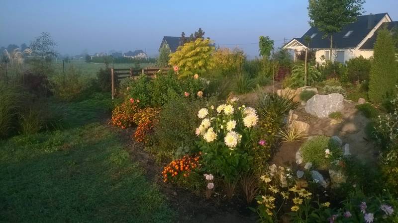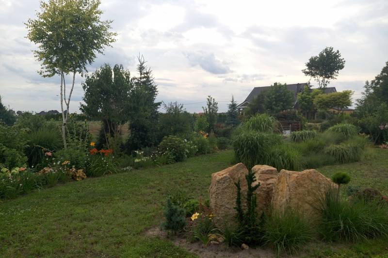 a chęci do roboty jeszcze były to zamawiałem kolejną ciężarówkę. Na szczęście do turlania tych kamyków miałem pomocnika, ale już każdy z nich sam osadziłem na ziemnej górce.
