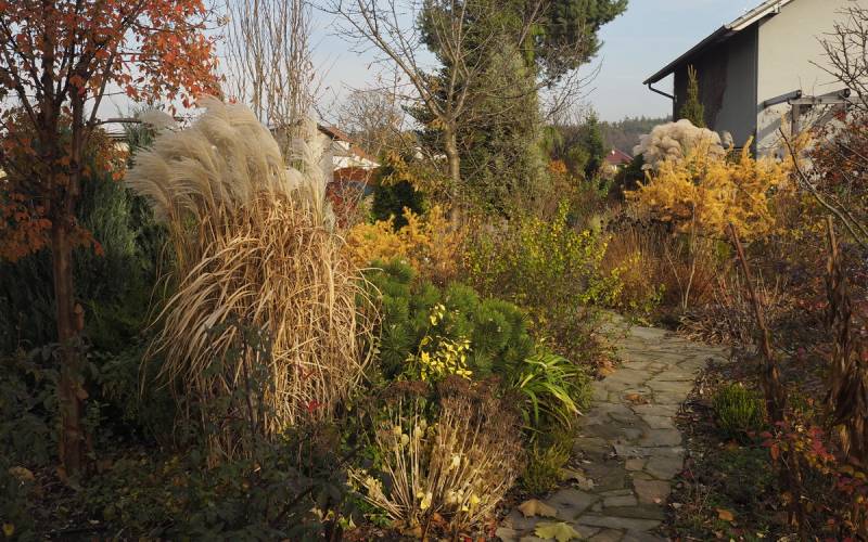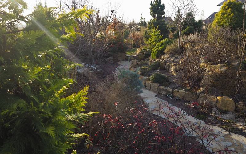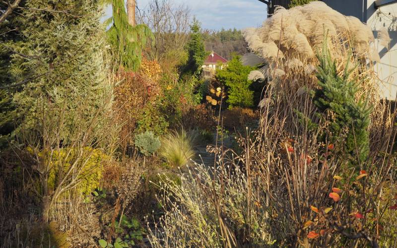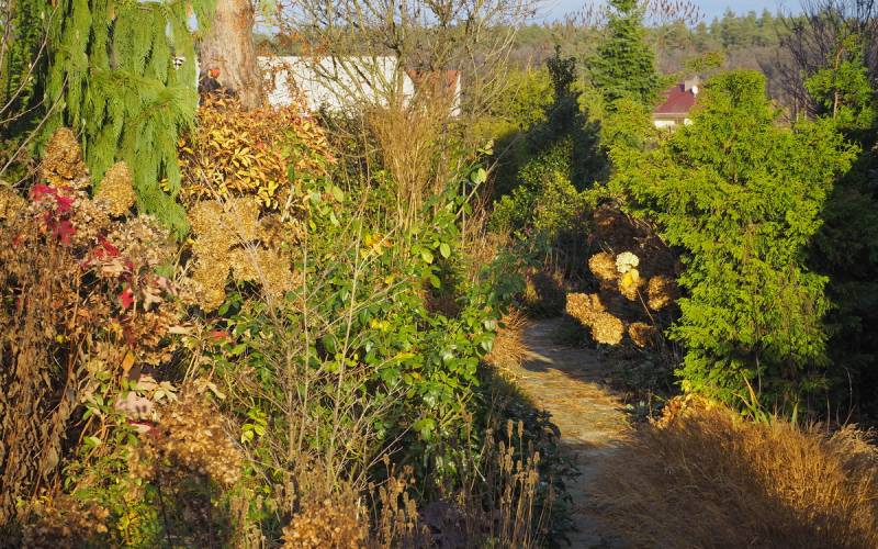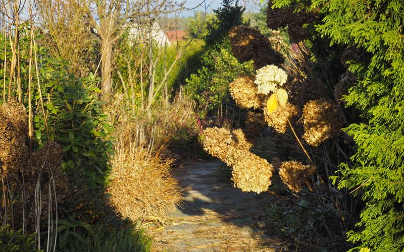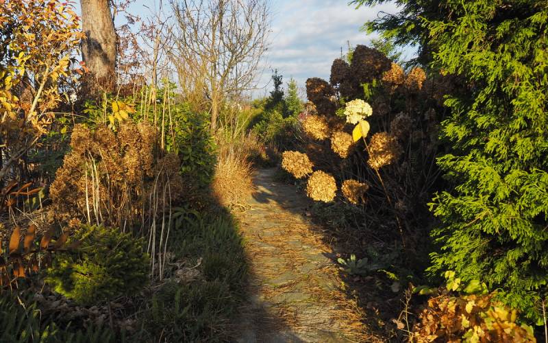 Po kilku jednak latach rośliny po obu ich stronach upominają się o swoje zagarniając coraz więcej miejsca i kamienne ścieżki giną w naszym buszu. To też ma swój urok